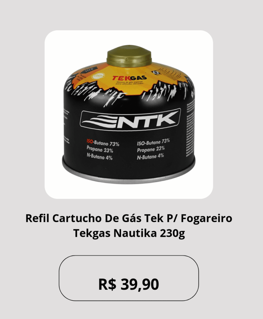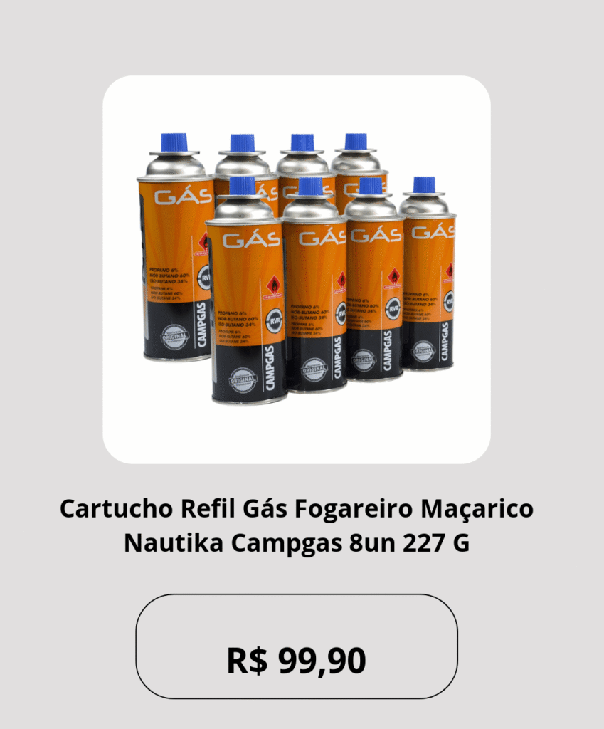 - Recarga de gás: Cozinhar apenas com as cápsulas de gás butano podem ser inviáveis pelo custo e durabilidade.